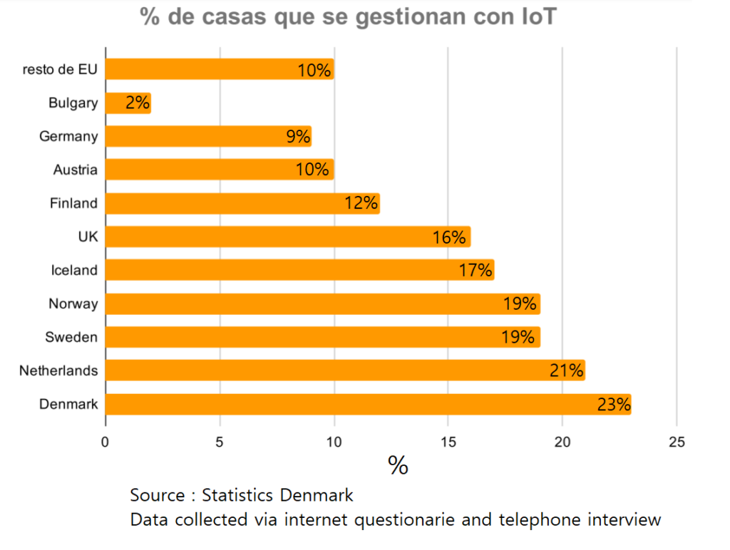 Es una tendencia en ascenso y en la que España va un poco rezagada. Observen qué países tienen un mayor número de casas que se gestionan mediante la Internet de las cosas en Europa.